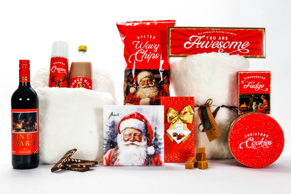Beleef de magie van de winter met ons zorgvuldig samengestelde kerstpakket. boordevol heerlijke lekkernijen en gezellige items die perfecte momenten creëren. Dit pakket begint met een fles van 75 cl winterwarm glühwein. alcoholvrij. zodat iedereen kan genieten van deze warme klassieker tijdens de koude avonden.